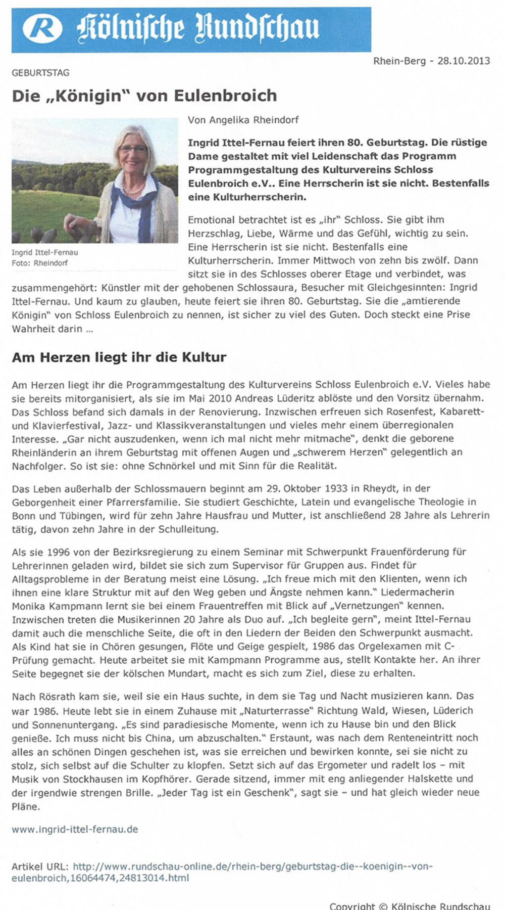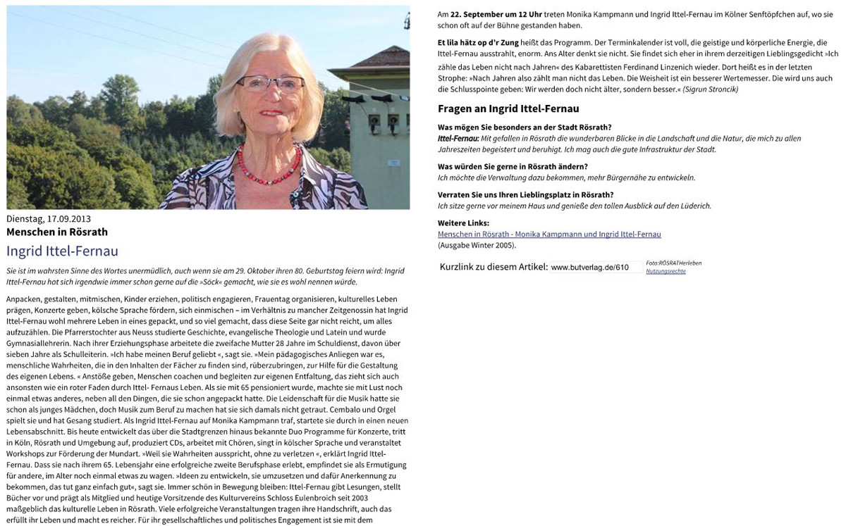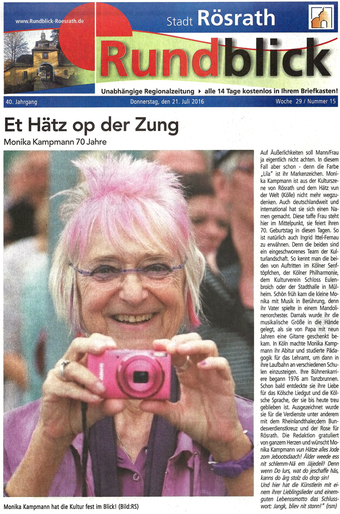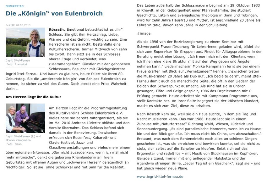 "Man wird nie satt, auch nicht bei der abschließenden Zugabe von Reinhard Börner: "Jeden Tag so zu leben“, und es bedurfte schon einiger kölscher Zugaben, und abschließend natürlich des unabdingbaren Berzau-Evergreens "Kutt jot heim!", um ein höchst zufriedenes Publikum zu den Schloss-Portalen hinaus