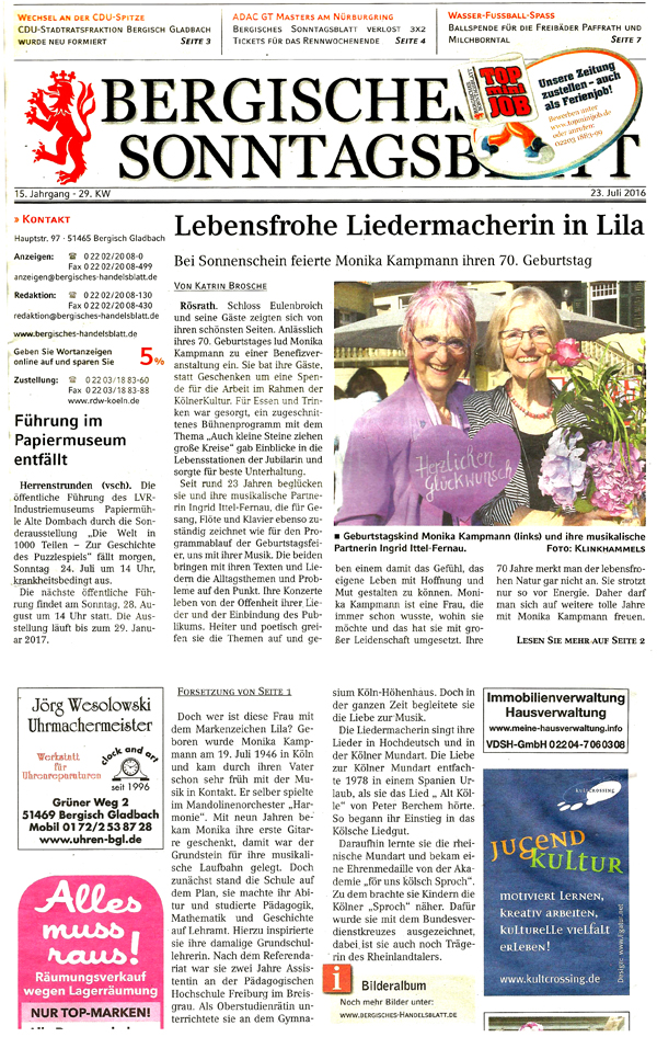 "Euer musikalischer Auftritt einfach grandios!" (Käthe Berghausen)
