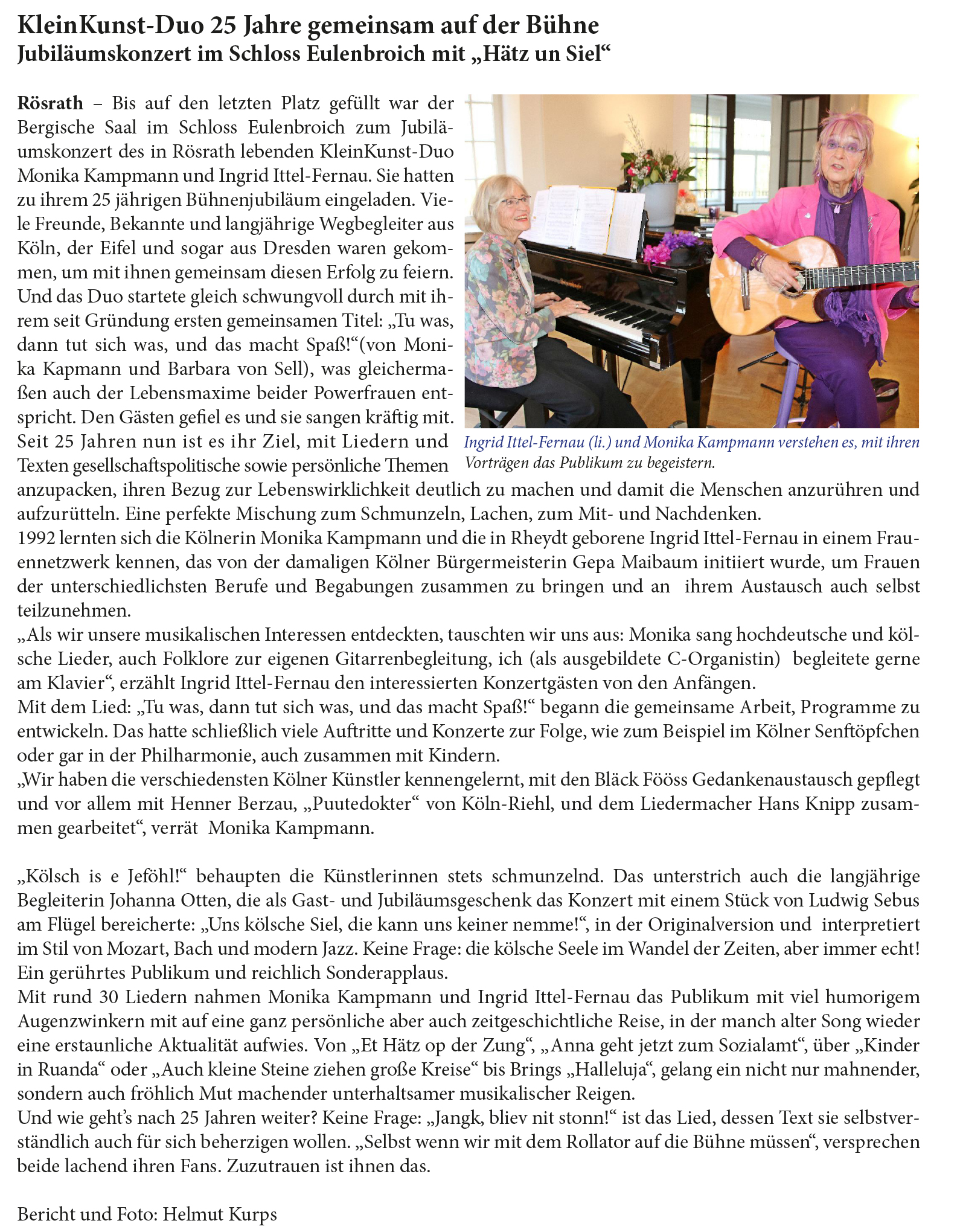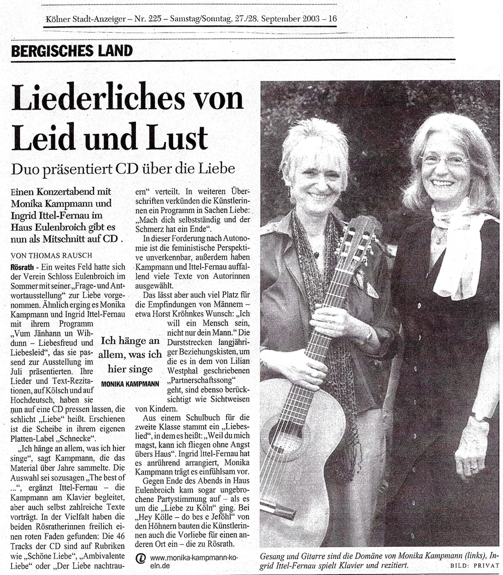 des Publikums waren Dank und Anerkennung an die beiden Künstlerinnen." (Dagmar Happ)