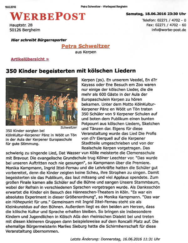 Mein immerwährendes Credo, dass es vollkommen egal sei, aus welchen Kulturen unsere Schulkinder stammen, alle können Kölsch lernen, bestätigte sich hier zu hundert Prozent.